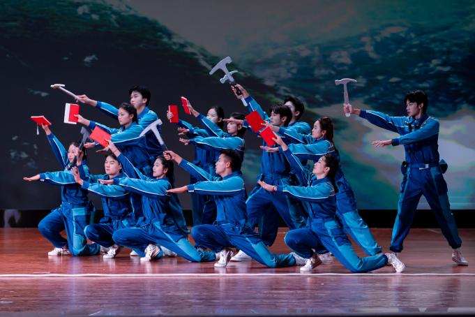 资源环境学院《山海铭初心》结合学院专业,以地质锤叩问大地脉搏,罗盘指引能源方向。学子以岩矿为书、勘探为笔,在舞台上还原“为国找矿”的赤子情怀,展现资源强国路上地质人的坚韧与荣光。