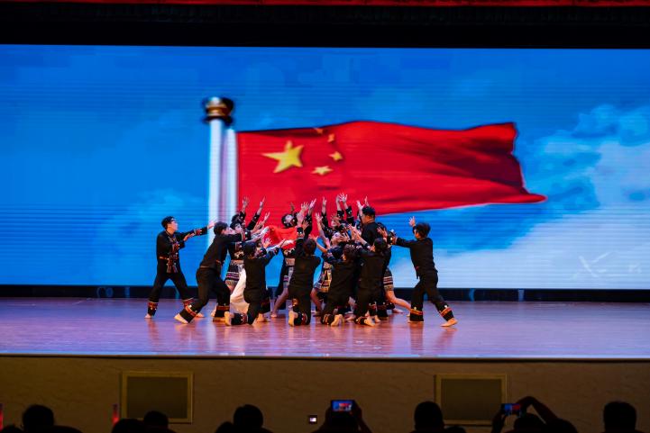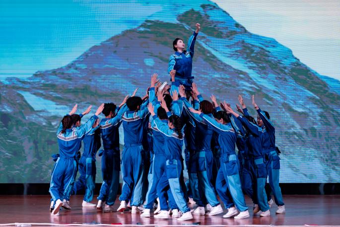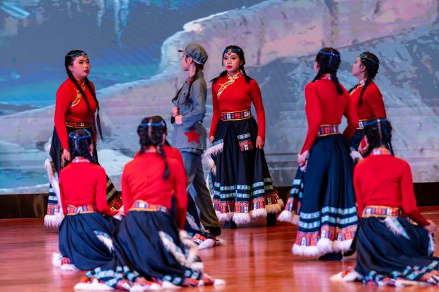 珠宝旅游学院舞蹈《唱支山歌给党听》,雪域高原的曙光化作长袖翻飞,舞步铿锵诉说百万农奴翻身解放的感恩。西藏民主改革的故事通过舞蹈重现,献礼党的恩情,唱响民族团结进步的强音。
