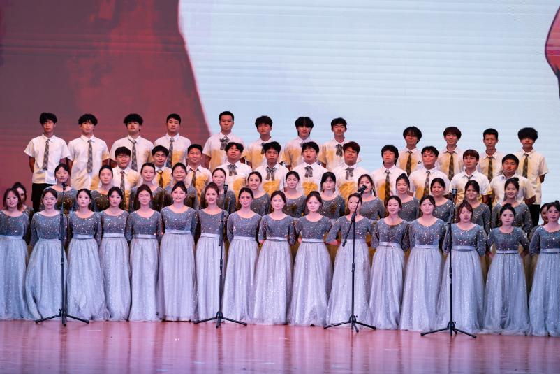 从南湖红船到新时代征程,井冈山的松涛与长征路的号角在歌声中回荡。青年以炽热嗓音点燃红色血脉,誓言将个人理想融入民族复兴伟业。整场晚会在大学生艺术团合唱团《燃烧》中接近尾声。