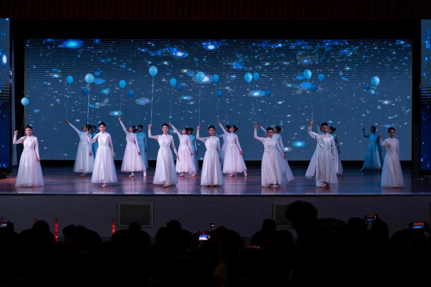商务信息学院《追光者》,气球携光而来,舞者以光影演绎林觉民《与妻书》的家国大义,新时代青年追随先辈足迹,将信仰化作奔赴未来的力量,致敬百年征程中的赤诚之心。